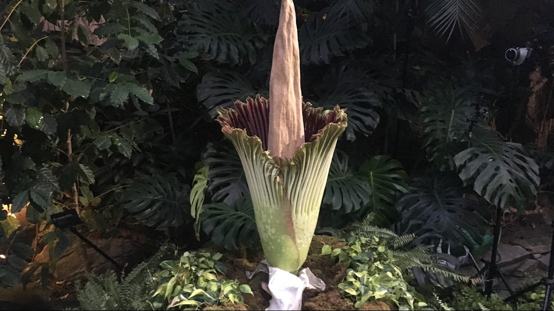 The corpse flower, which smells like rotting flesh when it blooms, is expected to bloom at Meijer Gardens this weekend.