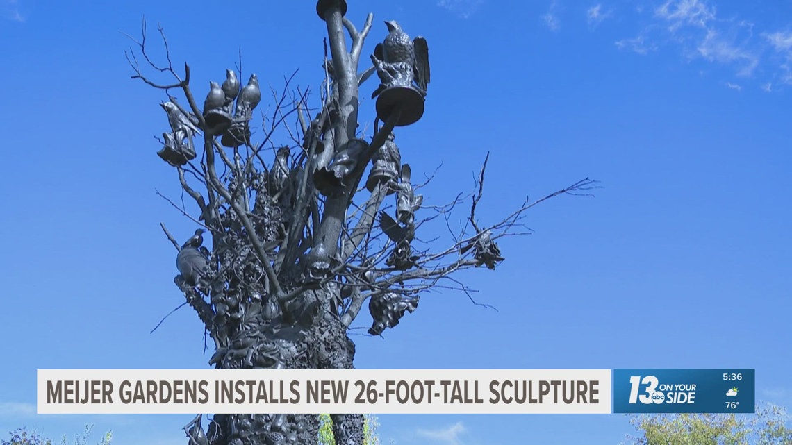 “Amalgam Origin” is a 26-foot-tall sculpture by artist Nick Cave, and it is the latest addition to Frederik Meijer Gardens and Sculpture Park.
