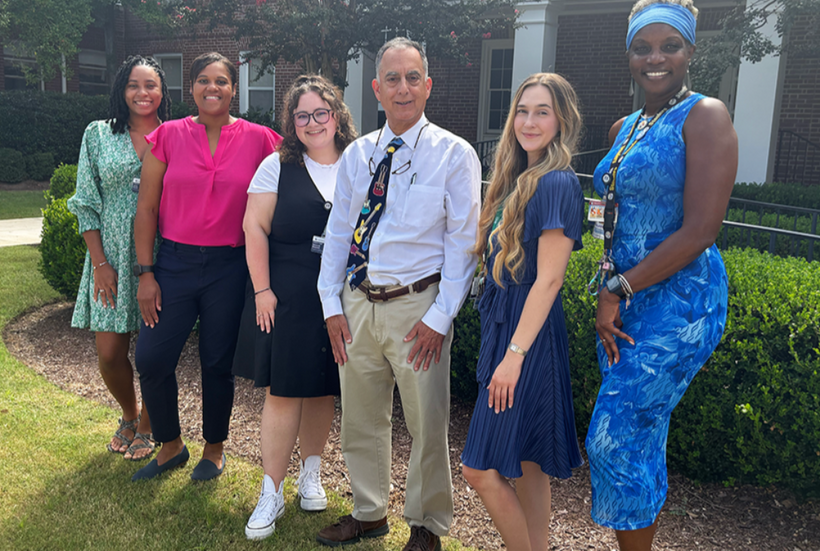 The research team conducting the AIMS Trial at the Medical College of Georgia. From left: Joely Fields, Jessica Britt-Thomas, PhD, Savannah Makowski, William Vaughn McCall, MD, Tess Dzurny and Laryssa McCloud, PhD. [Hannah Litteer/Augusta University]